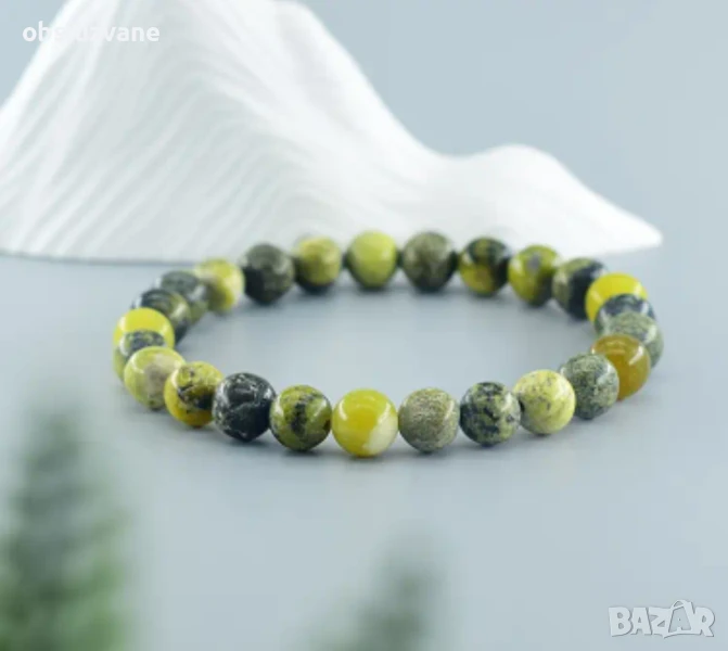 Бохемска еластична гривна с натурални камъни - жълто-зелен рожден камък за месеца юни: