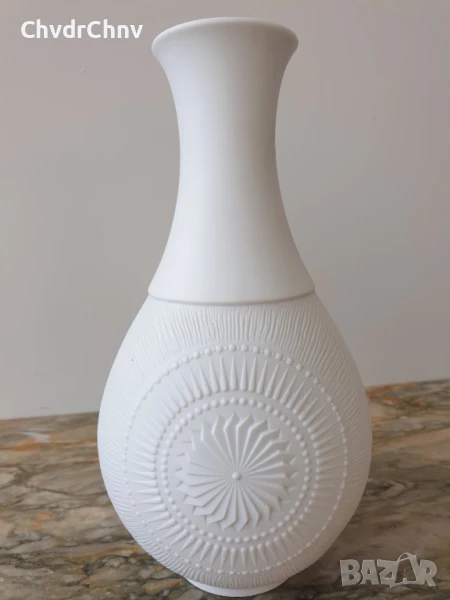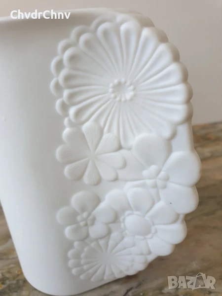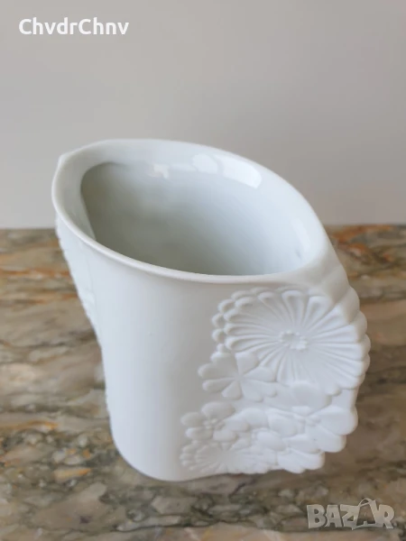 40 (ВАЗА 1) Височина 13 см, ширина 16х7,5 см, отвор 10x7 см, двустранна, плътен порцелан, релефна (бисквит/без гланц), маркировка/печат отдолу на АК/ALKA Kaiser Bavaria