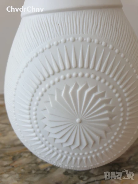 40 (ВАЗА 2) Височина 23 см, ширина 12 см (макс), отвор 6 см, двустранна, плътен порцелан, релефна (бисквит/без гланц), тъмно зелена отвътре, маркировка/печат отдолу на АК / ALKA Kaiser Bavaria