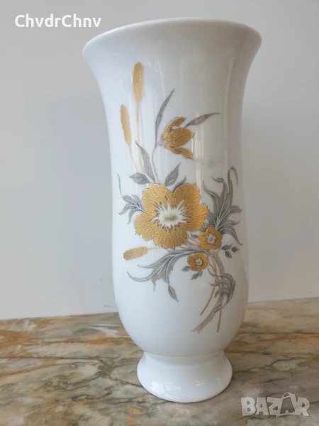 20 (ВАЗА 4) Височина 22 см, диаметър 10, см (макс/отвор), двустранна, плътен порцелан, с 22К злато, маркировка/печат отдолу на АК / ALKA Kaiser Bavaria