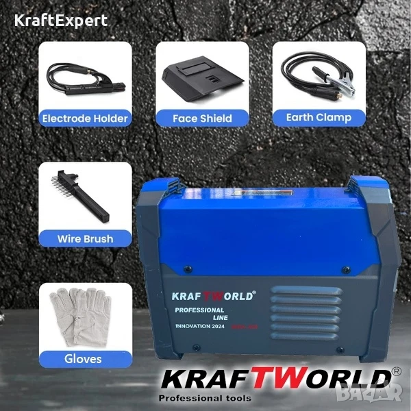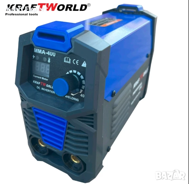 Електрожен 400А KraftWorld с Дисплей и Куфар + Подаръци24месеца ГаранцияПредлагаме на вашето внимание най-новия хит при електрожените. Модел 2024 г. Специализирана машина за заваряване на места където другите електрожени нямат шанс.Технически характеристики:Инверторен електрожен за ръчно електродъгово заваряване – IGBT INVERTER технология.Вградени функции:Функция Hot Start – за лесно запалване на дъгатаФункция Anti Stick – прекъсване на захранването, за избягване на залепването на електрода за материала.Функция Arc Force – регулиране динамиката на дъгатаЗащита от пренапрежение.Захранващо напрежение: 220 V.Захранваща мощност: 3,9 kVA .Напрежение без товар: 62 V.Електроди: до 5.0 мм. включително.Степен на защита: IP23.Комплектът съдържа:Инверторен Електрожен 400АУдобен куфар за преносМаска за заваряванеСоларна МаскаКабел за масаКабел с ръкохватка за електродиЧеткаЧукчеРъкавици