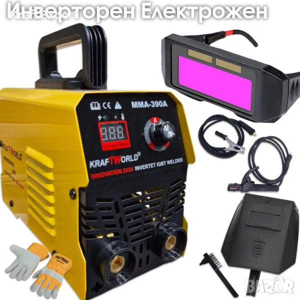 Инверторен Електрожен KraftWorld с Подарък Соларни Очила и Ръкавици – Лек и Компактен