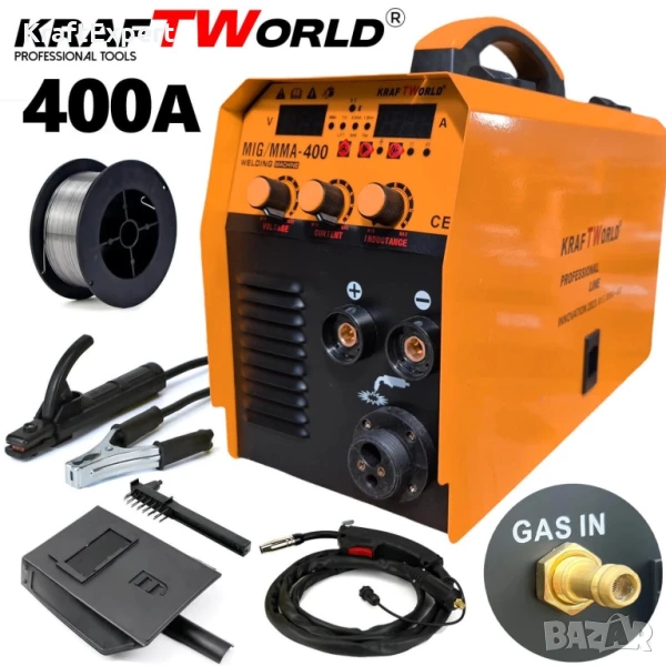Професионален Инверторен Електрожен KraftWorld 400А с Телоподаващо 2в1 – Компактен и Мощен