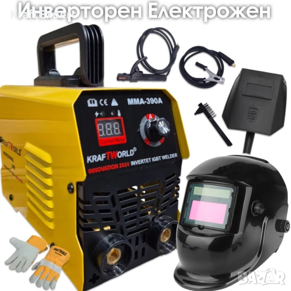 Инверторен Електрожен KraftWorld с Подарък Соларна Маска и Ръкавици – Професионален Комплект