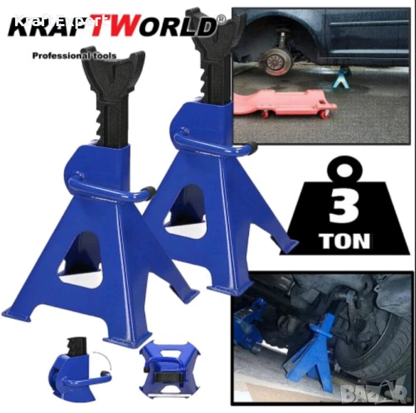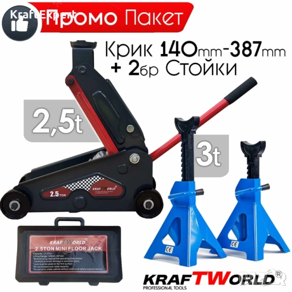 Професионален Комплект Крик 2,5т и 2бр Стойки 3т KraftWorld за кола,бус,джип