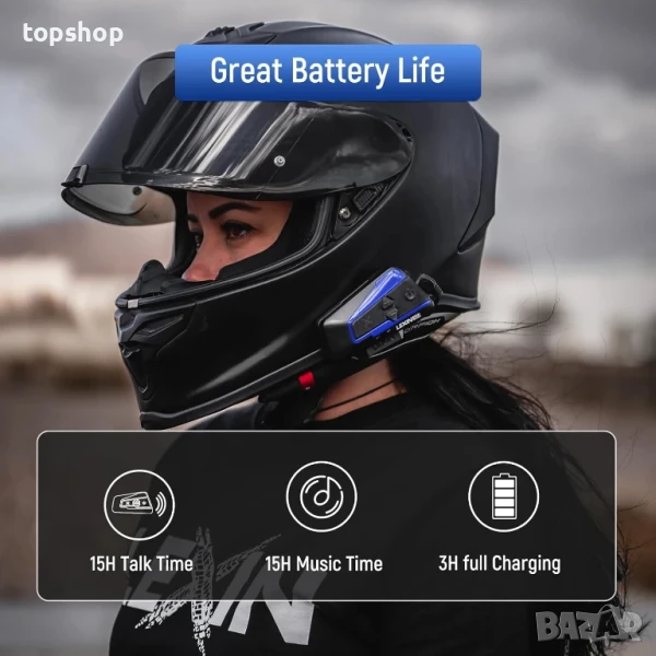 𝑰𝑷67 𝑾𝒂𝒕𝒆𝒓𝒑𝒓𝒐𝒐𝒇 𝑫𝒆𝒔𝒊𝒈𝒏 и 𝑳𝒐𝒏𝒈 𝑩𝒂𝒕𝒕𝒆𝒓𝒚 𝑳𝒊𝒇𝒆: Проектирани с водоустойчив дизайн за портове и щепсели, тези мотоциклетни слушалки остават устойчиви на различни метеорологични условия и работят безупречно дори при температури до -22°F. Здравата им батерия от 800mAh осигурява до 15 часа възпроизвеждане на музика или разговори по интерком, с впечатляващо време в режим на готовност от над 168 часа.