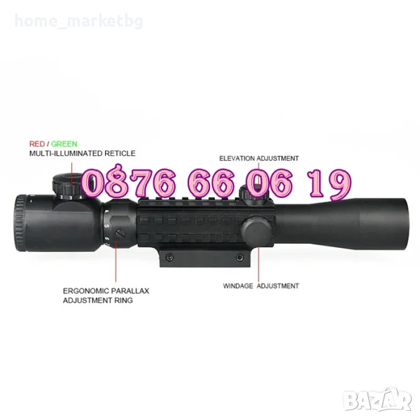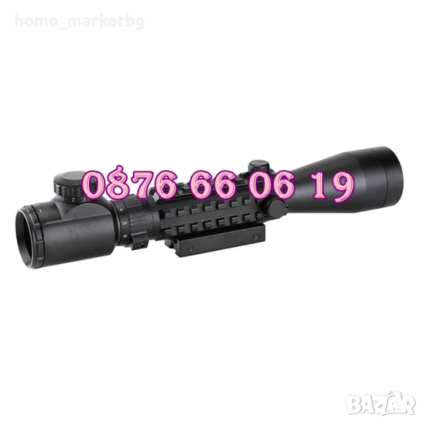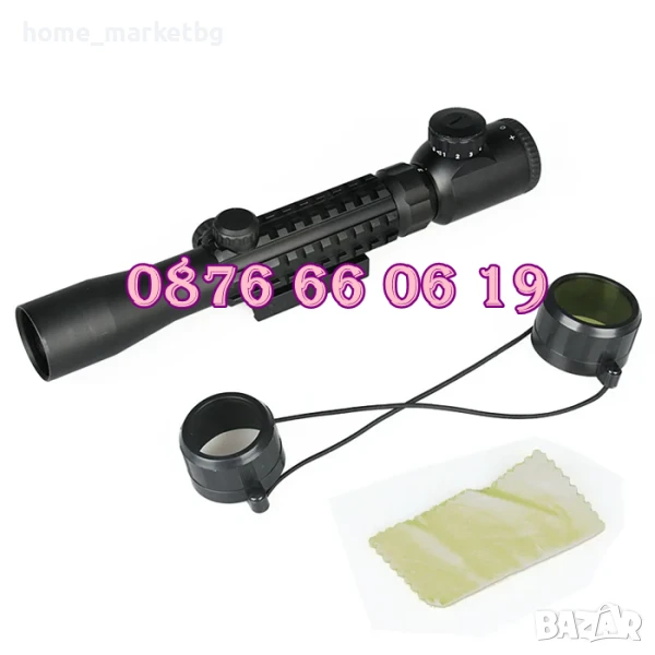 ОПТИКА ЗА ПРИКРЕПВАНЕ КЪМ ПУШКИ С РЕГУЛИРУЕМО УВЕЛИЧЕНИЕ от 3 до 9. Оптически прицел с двуцветна подсветка за ловна стрелба и вградена просветка за работа при намалена видимост в два цвята, червен и зелен с по пет степени за регулиране на интензитета за всеки цвят. Оптиката е чудесна принадлежност при лов. Отлично качество, рационален дизайн и елегантен външен вид. Наблюдавате и фокусирате обекти намиращи се на голямо разстояние.