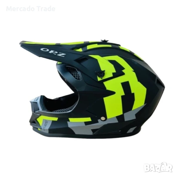 Кросова каска, За мотор, Атв и велосипед, S и M, Черен с неон и графит.