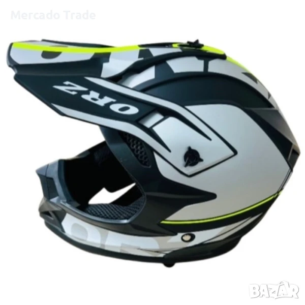 Кросова каска, За мотор, Атв и велосипед, S и M разер, Черен с неон и сив.