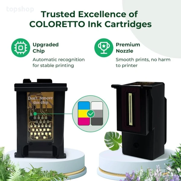 Касетите с мастило 303 XL (1 черна, 1 цветна; 2 пакета, не-OEM) предлагат висока съвместимост с различни принтери ENVY Inspire, ENVY Photo и Tango, осигурявайки широка използваемост в много модели. Тези преработени касети разполагат с най-новата чип технология за точно отчитане на нивото на мастилото, като черната касета дава капацитет от най-малко 400 страници, а цветната касета - поне 450 страници на базата на 5% покритие на хартия A4. Използването на висококачествено мастило води до ярки, ясни и гладки разпечатки, подобряващи документите и снимките с живи цветове и резки детайли. Проектиран за лесна инсталация и стабилна издръжливост, всяка касета е стриктно тествана, за да предотврати често срещани проблеми като запушване и грешки при разпознаване. С екологични опаковки.