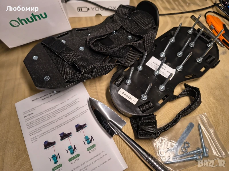 Противоплъзгащи се дъна и лопата за почистване: Аераторните обувки Ohuhu са с издатина на дъното, така че шиповете да останат здраво заключени на място. Освен това, противоплъзгащите подложки предотвратяват подхлъзване, когато тревата е мокра. Допълнителна лопатка от неръждаема стомана е предоставена за почистване на мръсотията, полепнала по подметката на обувката.