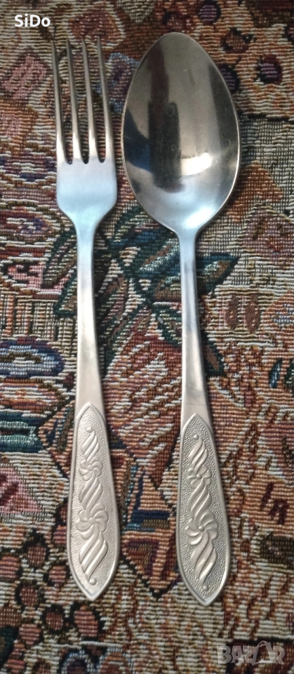 Лот 55 бр вилици, лъжици нови и запазени от времето от 1980г +подарък дъска за рязане на хляб,луканка и др.са в много добро състояние, както се вижда на снимките и са нови!Цена 0.50€/брой вилица,0.50€/бр.лъжица за хранене! Или Цената е 25€ за целият лот,но ако Ви трябват вилици,лъжици,ножове като по-малко бройки пишете и ще се разберем каквото Ви трябва на вас! Може и ЛЕК КОМЕНТАР НА ЦЕНАТА ЗА СЕРИОЗНИ ПОТРЕБИТЕЛИ!Пращам по Еконт с опция преглед и с 10% отстъпка за доставка до всяка