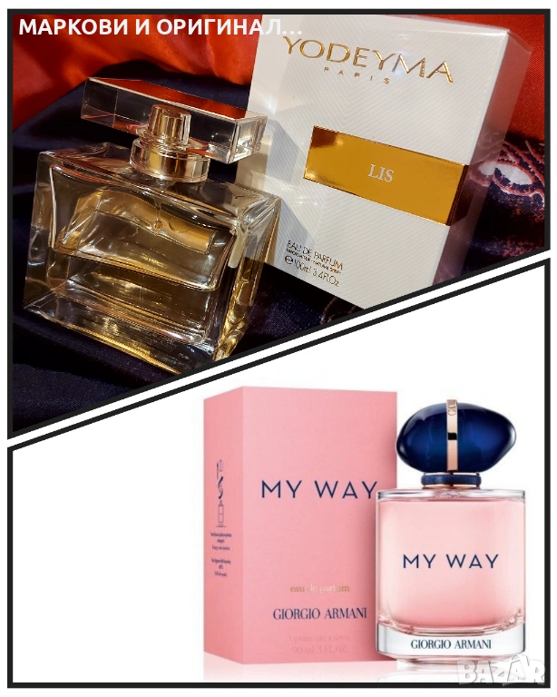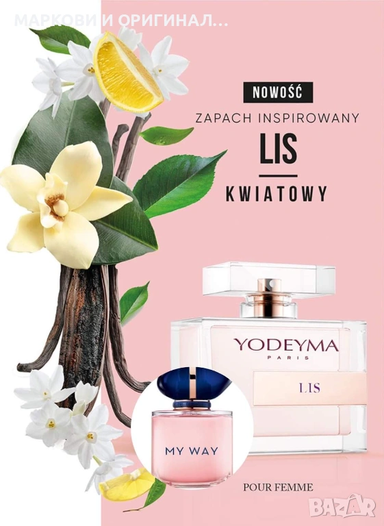 Yodeyma Paris " LIS " Дамски парюм, вдъхновен от " MY WAY " Разкошен и много траен, за дамите с изискан вкус. Подходящ за подарък, за всеки повод в три варианта..