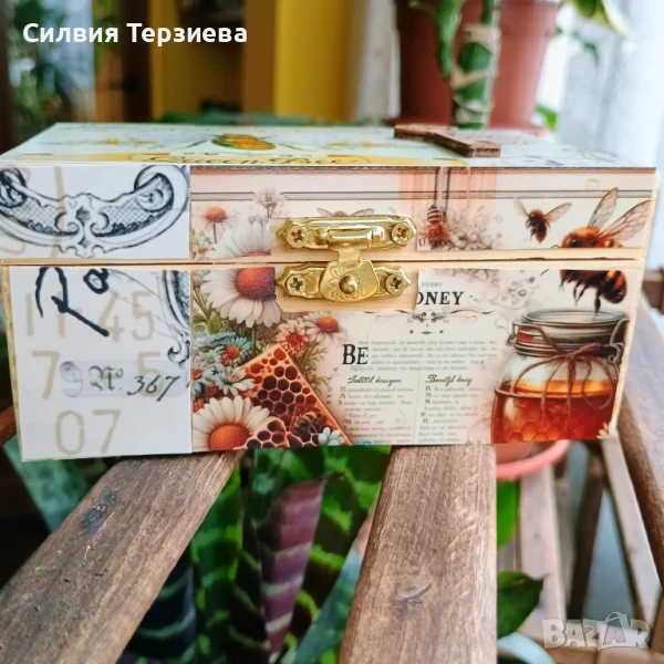 Ръчно изработена дървена кутия "Vintage bee" → Обява 50578571
