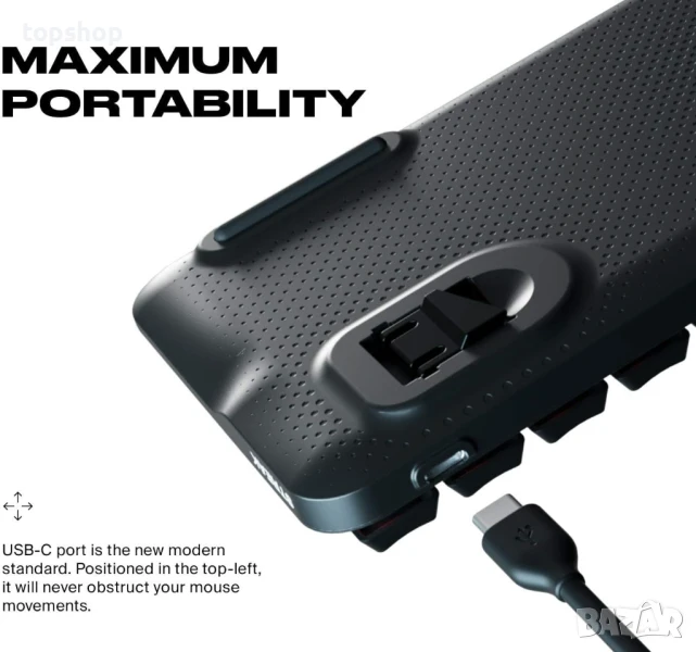 65% ФОРМ-ФАКТОР: Супер компактната конструкция ви позволява да увеличите максимално пространството на бюрото и мишката, като същевременно запазвате клавишите със стрелки и пълната функционалност. Всички типични действия на клавиатурата са достъпни на интелигентен FN слой.