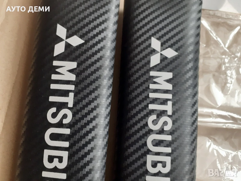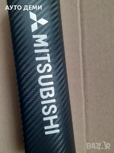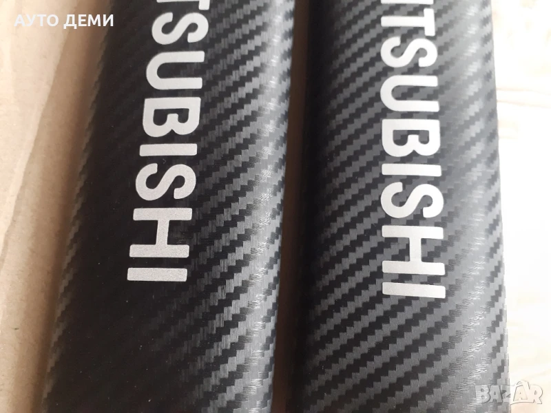 Цена за два броя протектори черни карбон кожа с надпис и емблема Mitsubishi - 20 лв.