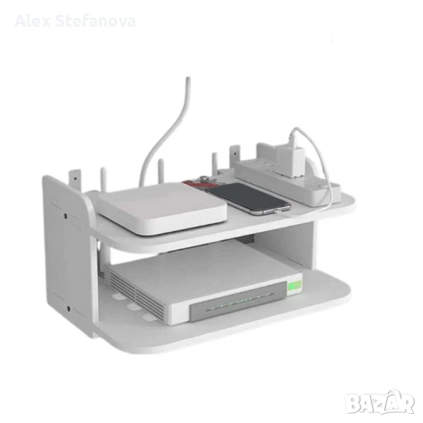 Стенната етажерка е практично и стилно решение за организиране на рутери, зарядни устройства, дистанционни управления и други дребни електронни аксесоари.