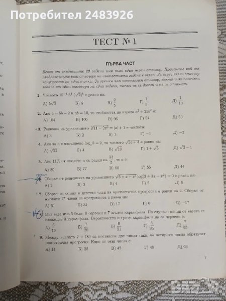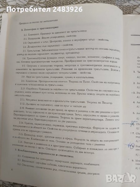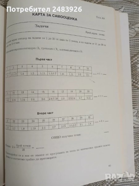 варианти включват по 20 задачи с избираем отговор и 10 задачи със свободен