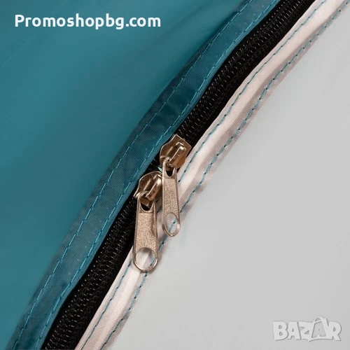 Палатката се затваря с двоен цип. Благодарение на това можете да поставите най-необходимите си неща вътре и да затворите палатката. Чрез затваряне на входа на палатката, напр. от дъното до средата, можете да защитите спящо дете или домашен любимец, като следите за температурата вътре в палатката.
