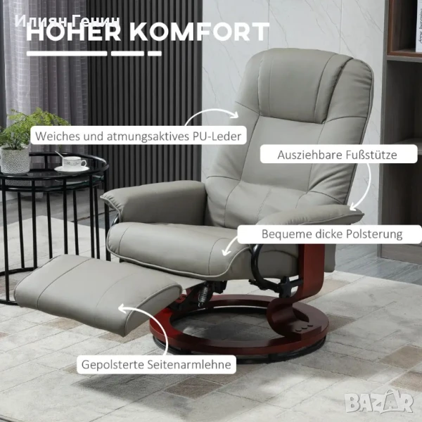 ✔ Накланяща се на 145° облегалка на телевизионния стол с ръчно регулируема поставка за крака - седнете, облегнете се назад и се отпуснете