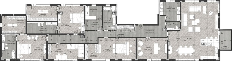 Представяме на Вашето внимание пентхаус на последния етаж на нова жилищна сграда без аналог на пазара в Центъра на столицата. Апартаментът ще разполага със следното функционално разпределение: