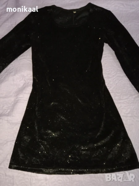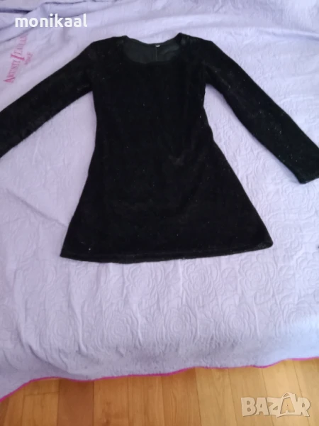 Красива къса черна рокля с лъскави нишки. Дължина 78см, ширина при талията 36см. Има еластичност.