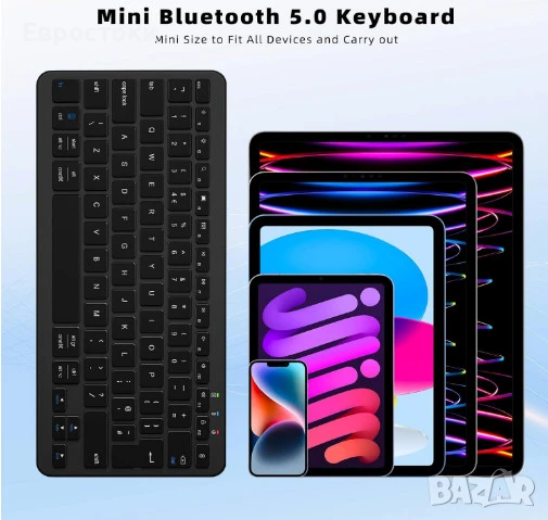 Безжична Bluetooth връзка. Свържете се с вашия телефон/iPad/таблет/компютър чрез Bluetooth 5.0 без кабели. Работното разстояние на Bluetooth е до 10 м, което прави тази мини безжична клавиатура лесна за използване в учебна стая, библиотеката или където и да е необходимо.