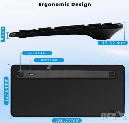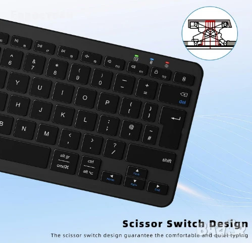 Ергономичен дизайн. Нископрофилните ножични клавиши предлагат плавно, тихо и познато писане, подобно на лаптоп. Леката мини Bluetooth клавиатура е лесна за носене, така че можете да вършите много задачи едновременно у дома, на работа или в движение.