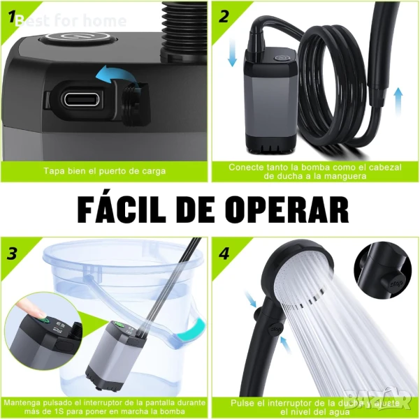 【Нисък шум】С издръжлив и тих мотор, нашият преносим душ позволява спокойно изживяване при вземане на душ на открито. Помпата за душ е регулируема за висок и нисък дебит на водата, потъва под водата и здраво захваща кофата, което улеснява контрола на водния поток и пестенето на вода.
