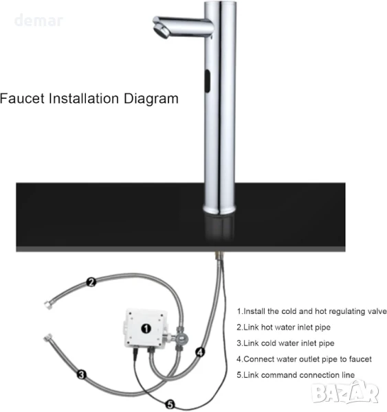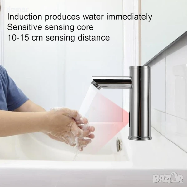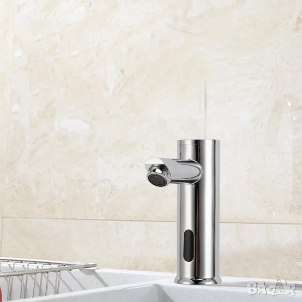 Този безконтактен смесител е снабден със сензор за движение и инфрачервена технология за работа без ръце, идеален за търговска употреба или употреба в банята. Работи с 4 AA батерии, което го прави функционален дори без електрически контакт. Вграденият филтър помага за премахване на замърсявания, а многослойният балон осигурява мека струя вода без пръски за по-комфортно измиване на ръцете.