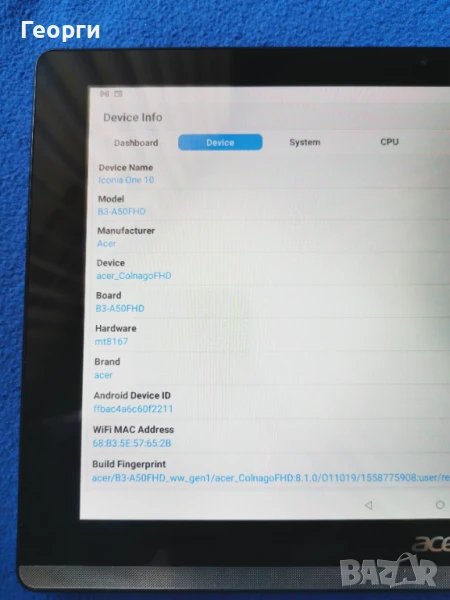 таблет Acer Iconia One 10 (B3-A50FHD) → Обява 50585367