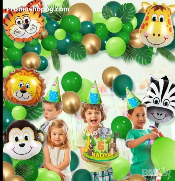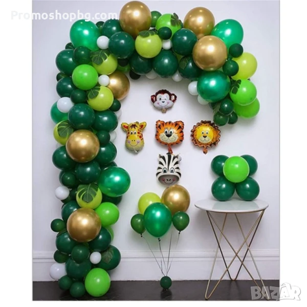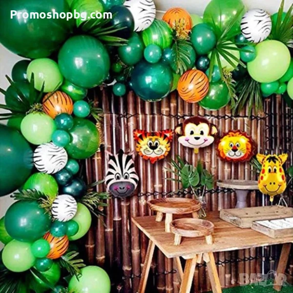 Комплект балони и украса за рожден ден Джунгла - 109 части → Обява 50586018