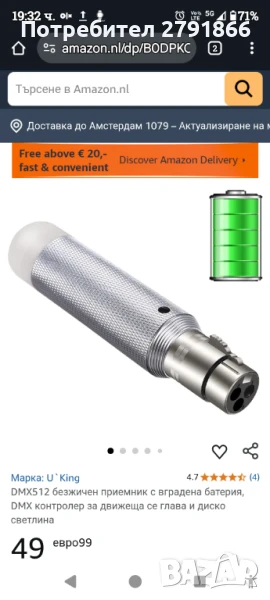 DMX512 безжичен приемник с вградена батерия, DMX контролер за движеща се глава и диско светлина