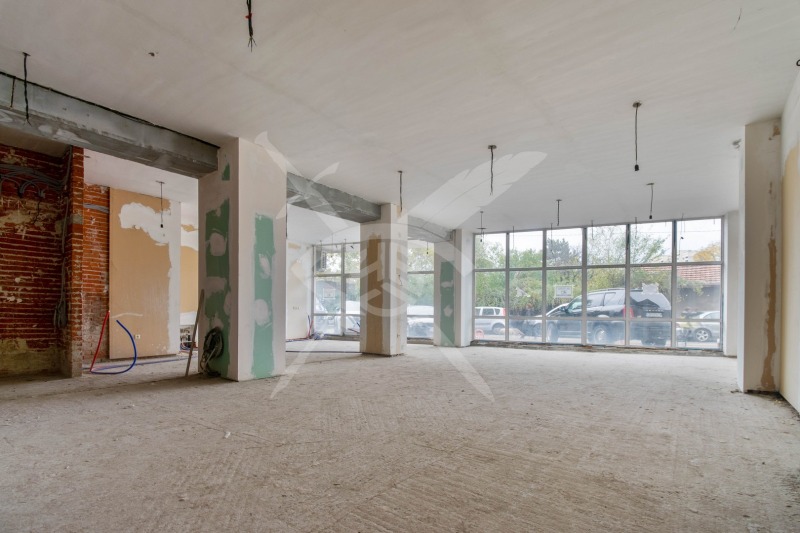 РАЗПРЕДЕЛЕНИЕ: Имотът разполага с площ от 203 кв.м., разпределена в общо просторно помещение, склад и баня с тоалетна.