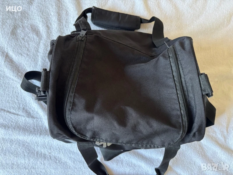 Състояние отлично. С вътрешен джоб с цип. С дръжки с лепещо и презрамка която има опция да се махне. Дължина измерено от дъното 38см. Височина измерена отстрани 21см. Широчина измерена отстрани в средата е 20см.