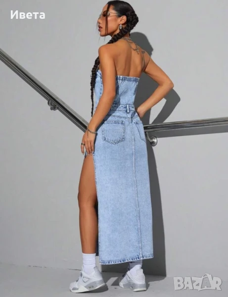 Дамска дънкова рокля, снимка 1 - Рокли - 50587121 Дамска дънкова рокля, снимка 2 - Рокли - 50587121 Дамска дънкова рокля, снимка 3 - Рокли - 50587121 1/3