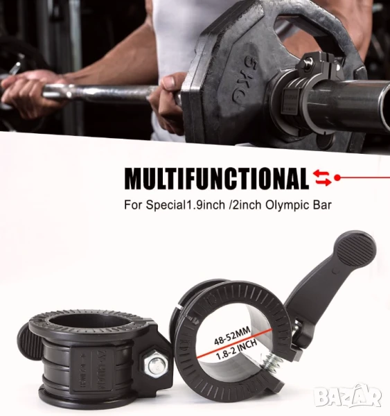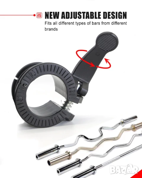 Новият регулируем дизайн пасва на всички стандартни олимпийски и професионални барбели - да се сбогувате с неприятностите от намирането на правилната скоба, за да заключите тежестта. Нашите регулируеми бар на яки гарантират сигурно прилягане с всяка марка Barbell/Dumbbell, осигурявайки стегнато сцепление, без да се жертва изпълнение.
