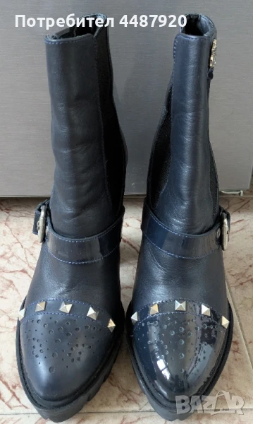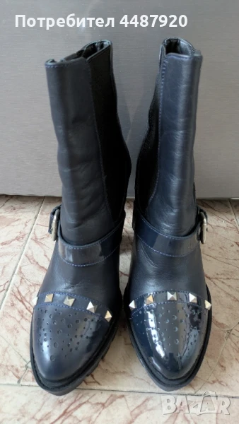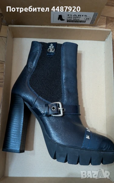 Дамски боти с висок ток Daris. Както се вижда на снимката ботите НЕ са обувани. Купувани са за 180лв. Цвят тъмно син. За допълнителни въпроси, пишете съобщение.
