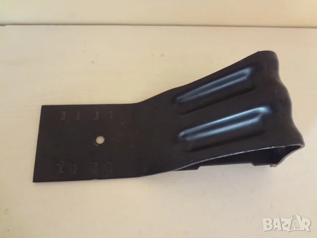Чисто нов автомобилен стоманен клин стопер за гуми. Необходим е на всеки собственик на автомобил, като много важно помощно средство за обездвижване на автомобила при повдигането му с крик за смяна на спукана гума или при смяна на джантите . Могат да се застопоряват и колелата на караваната или кемпера на къмпинга . Не заема много място в колата, но върши много работа при аварийна ситуация на пътя. Много здрава и солидна стоманена изработка, а не е пластмасово изделие , което веднага се изкривява от тежестта.