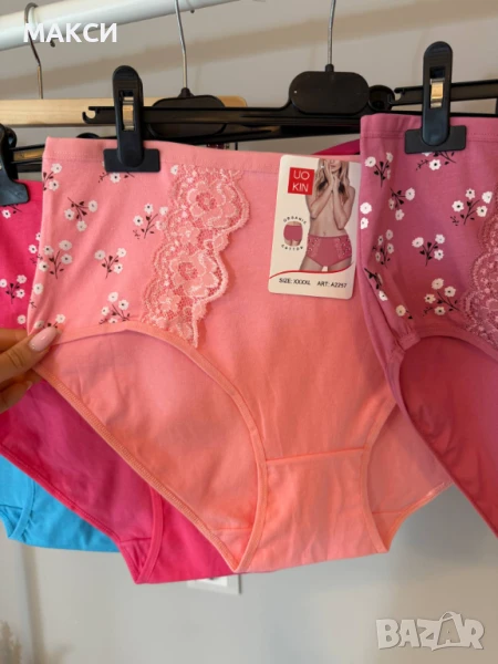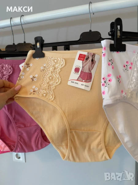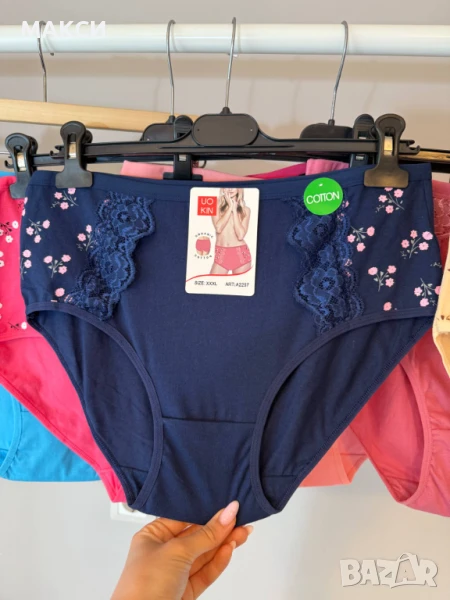 Макси красиви висококачествени памучни еластични бикини с висока талия в различни цветове +дантелка → Обява 50587560