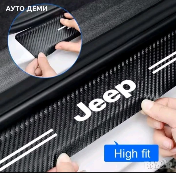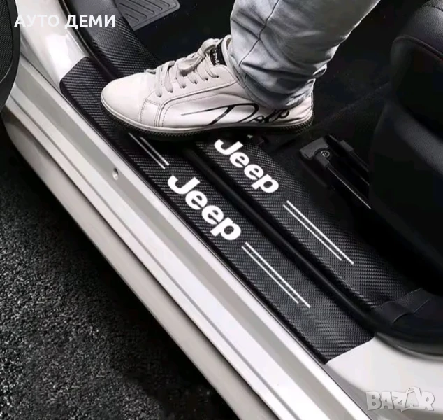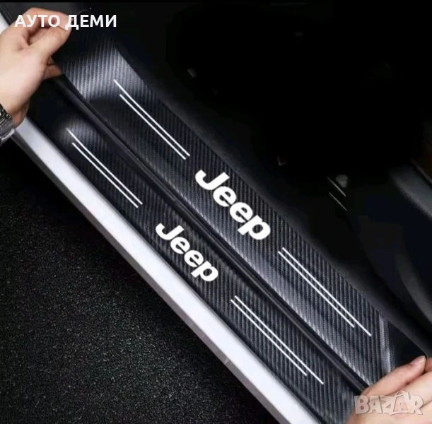Продавам гланцирани самозалепващи стикери за прагове и броня на автомобил с надпис на Jeep .