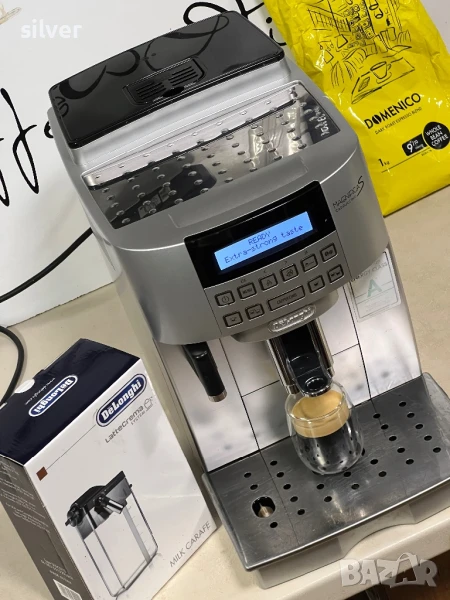 В много добро визуално и отлично техническо състояние, работи перфектно. Почистена смазана минала е пълна профилактика готова за употреба. Работи с кафе на зърна и мляно кафе, приготвя уникално кафе. Посочената цена е без кана с нова кана 420лв Пълна гаранция 1 месец . Пътува с опция преглед и тест преди плащане