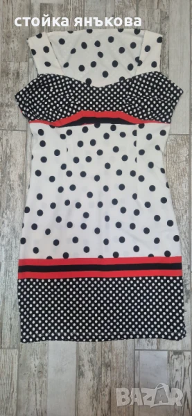 дамска рокля на точки бяло черно червено → Обява 50589655