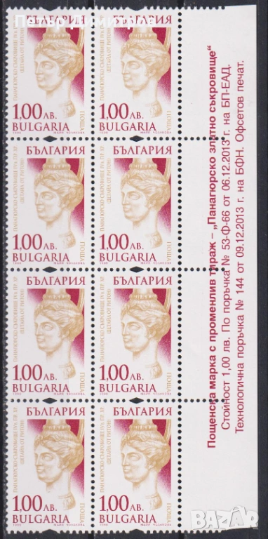 1. Чиста марка (х 8) Панагюрско златно съкровище 1999 от България. Марката е с механична защита и хартия с UV нишки. Цена € 20,45 (сн. 1)