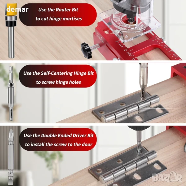Комплект инструменти за монтаж на панти за врата, подходящ за дължина от 2-1/2” до 5”