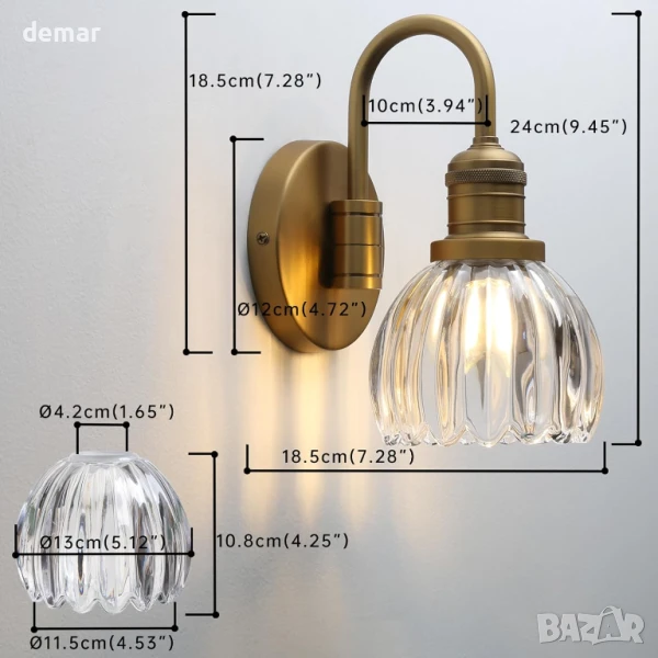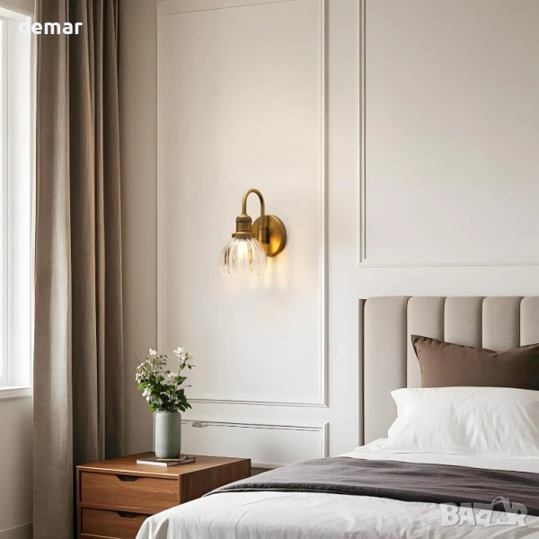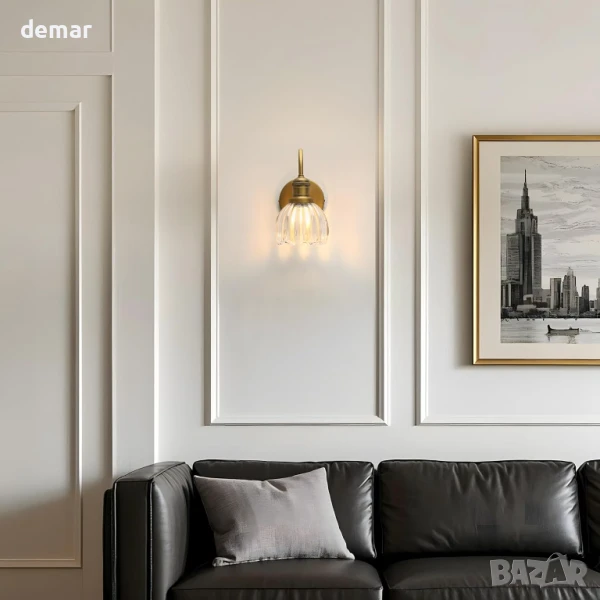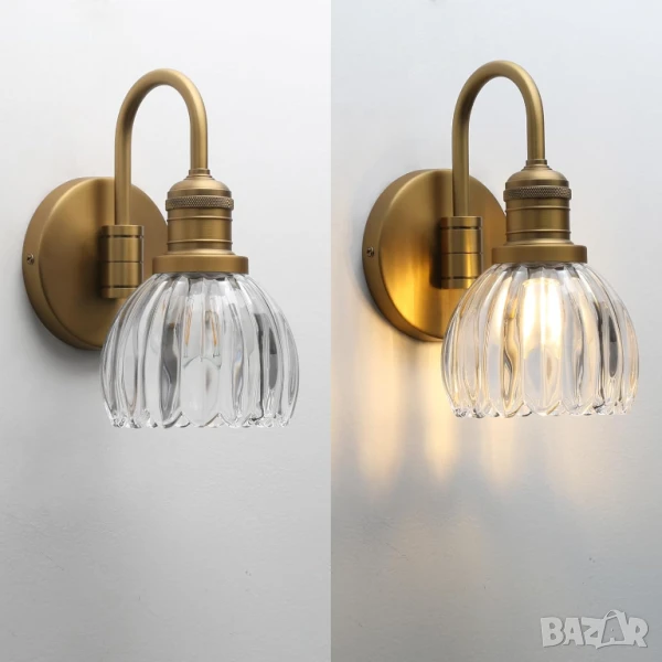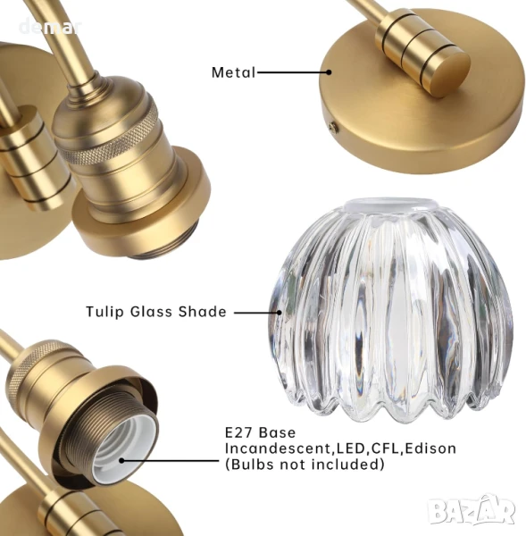 Този стенен аплик е с прозрачен стъклен абажур с форма на лале, който хвърля елегантни светлинни шарки, като същевременно защитава крушката, което го прави идеален за бани, кухни или жилищни пространства. Поддържа 110–220V и използва цокъл E27, съвместим с различни видове крушки до 40W, и е димируем с подходящи крушки и ключове. С компактен дизайн и включена монтажна плоча, той предлага лесен монтаж с кабел.