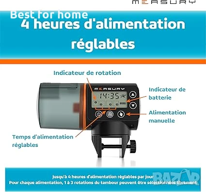 Диспенсър за храна за аквариумни рибки Measury, Автоматична хранилка за рибки до 4 пъти на ден