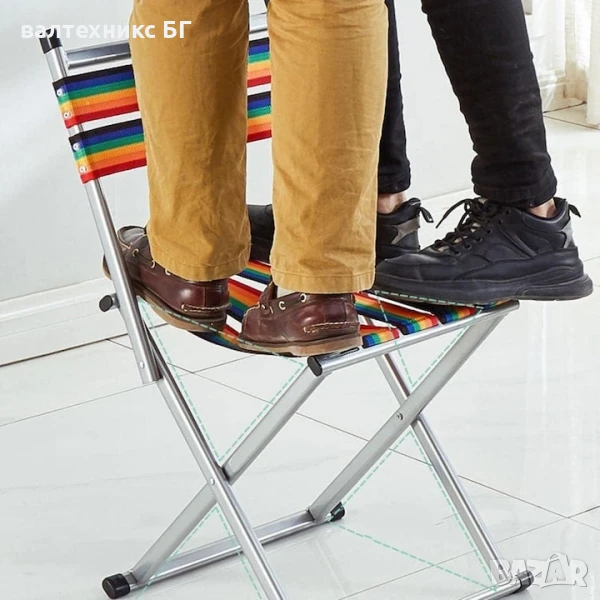 Столове те са предназначени за пикник, риболов, къмпинг.Супер леки, с тегло от само 2 кг, като също така е много устойчив, в същото време издръжливи и стабилени.Заемат малко място.Изработени е от износоустойчив полиестер с водоустойчива импрегнация.Размери: 34х34х70смМаксимално натоварване: 100 кг.Стол с облегалка цена:25лвСтол без облегалка цена: 15лв