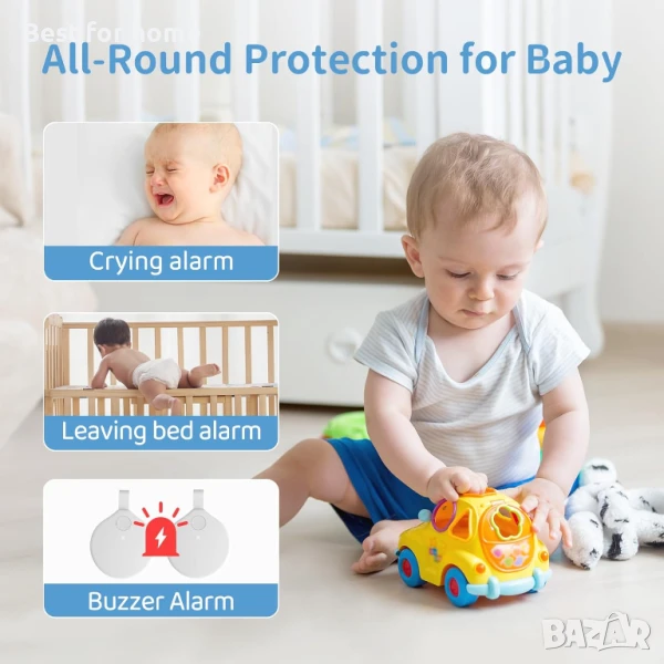 Алармен сигнал за опасност! Чувствителни аларми за наблюдение на дишането, които предотвратяват задушаване на спящи бебета, аларма за плач и аларма за пътуване в леглото, за да знаете кога бебето ви има нужда от вас по всяко време и ефективно предотвратяват нараняване на бебето. Оборудвани са с два допълнителни зумера, за да осигурят двойни напомняния за аларма и лесно пренасяне.