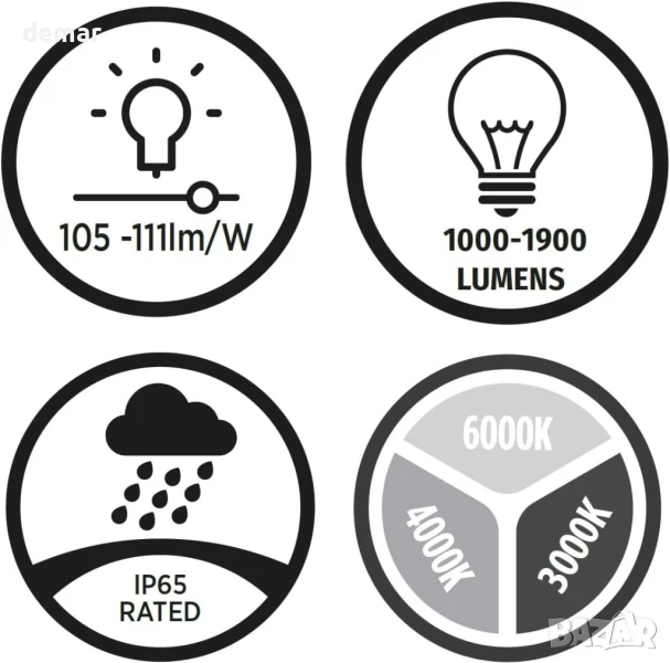Този осветителен модул предлага регулируеми опции за мощност (9W, 14W, 18W) и превключващи се цветни температури (3000K, 4000K, 6000K), за да отговаря на различни настройки, като същевременно осигурява ярък светлинен поток до 1900 лумена. Включва микровълнов сензор за движение за допълнителна сигурност и енергийна ефективност, а неговият IP65 рейтинг гарантира надеждна работа както на закрито, така и на открито, дори при тежки условия.